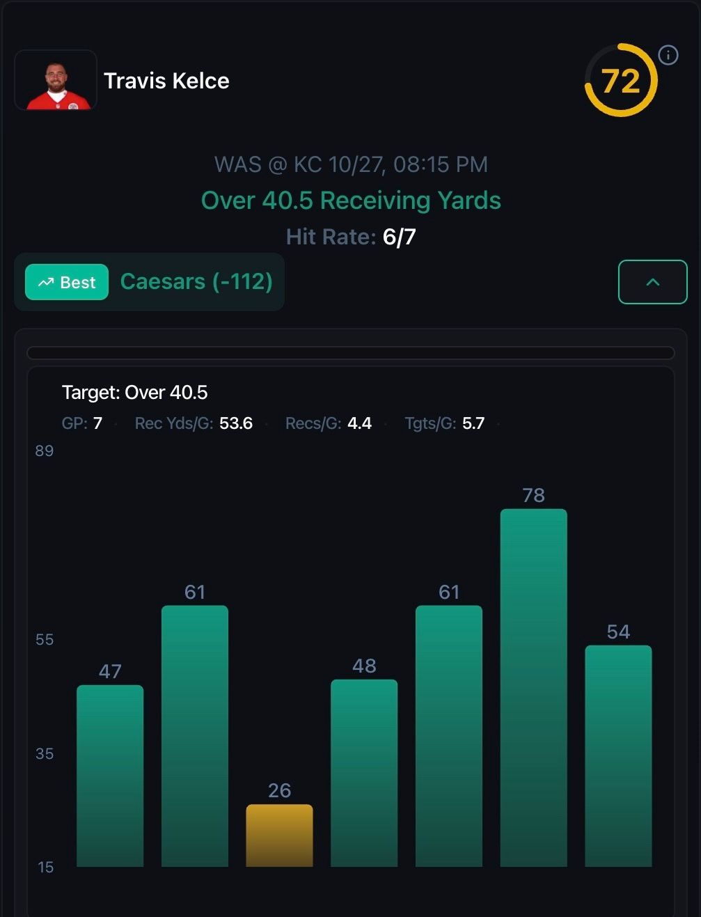 🎯 Travis Kelce OVER 40.5 Receiving Yards
